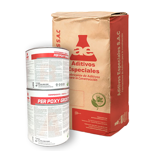 PER-POXY GROUT es un mortero de alta resistencia de tres componentes, Parte A (resina), Parte B (catalizador), Parte C (agregado). Especial para colocar bajo las placas de todo tipo de maquinaria, reparación estructuras de concreto, anclajes,
